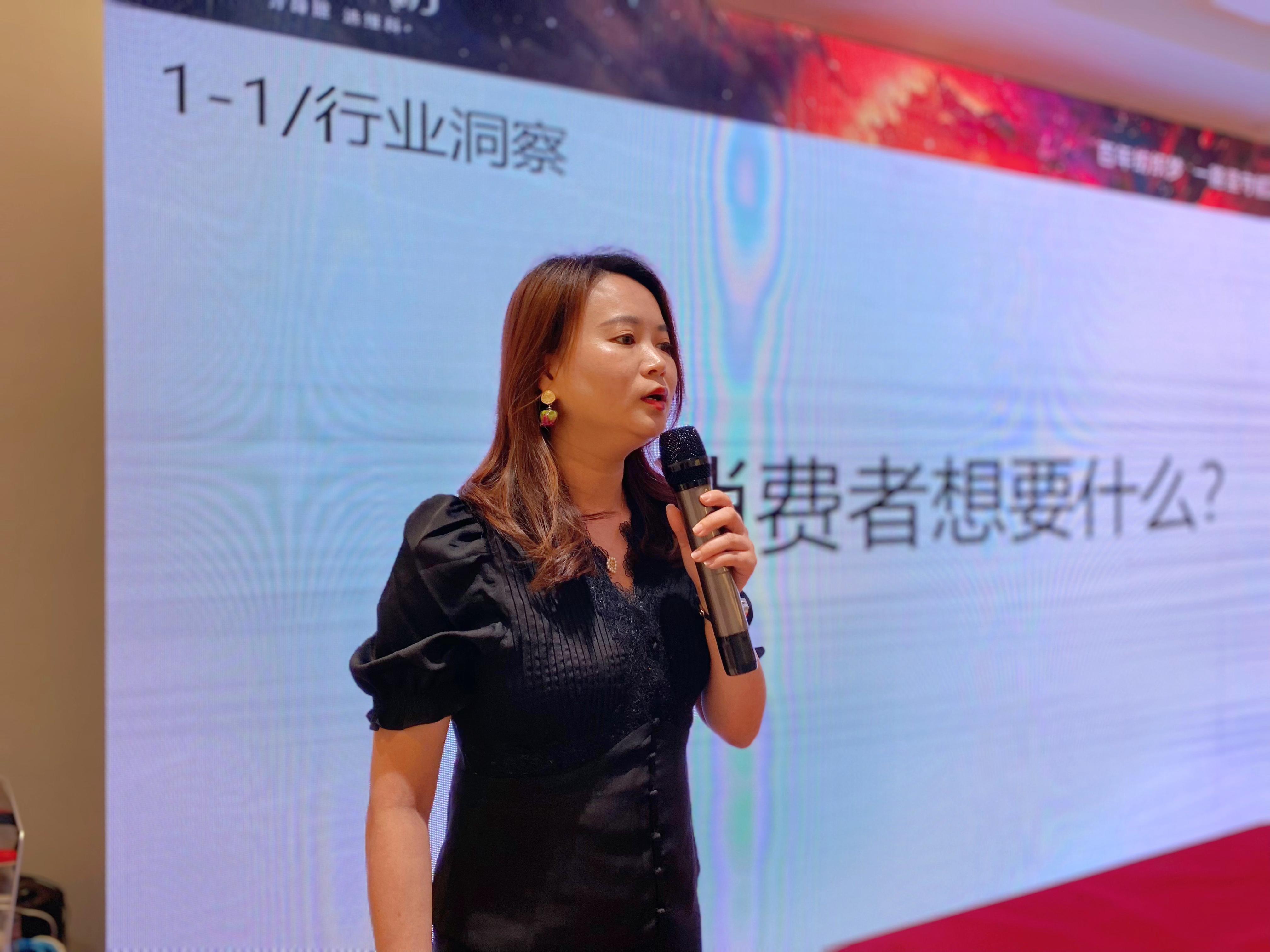 品牌推廣部經理畢優曉女士從品牌背景、主題發布、產品發布和品牌營銷四個方面闡述了秋冬擴大聲量的動作,帶來新品上市方案。